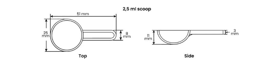 | Maatschepjes met ronde bodem | 1 ml, 2,5 ml, 5 ml, 10 ml, 15 ml, 25 ml, 30 ml, 50 ml |